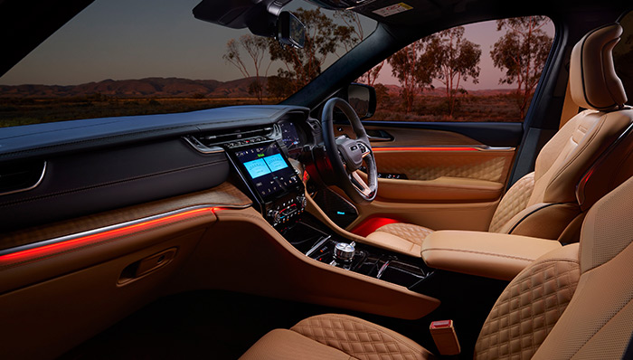 The all-new Grand Cherokee L has the interior space to let you bring more people along for the journey. The driver and front passenger seats feature luxurious seating surfaces, available multi-colour Ambient LED Lighting, wireless Apple CarPlay & Android Auto, 7-seats and more.